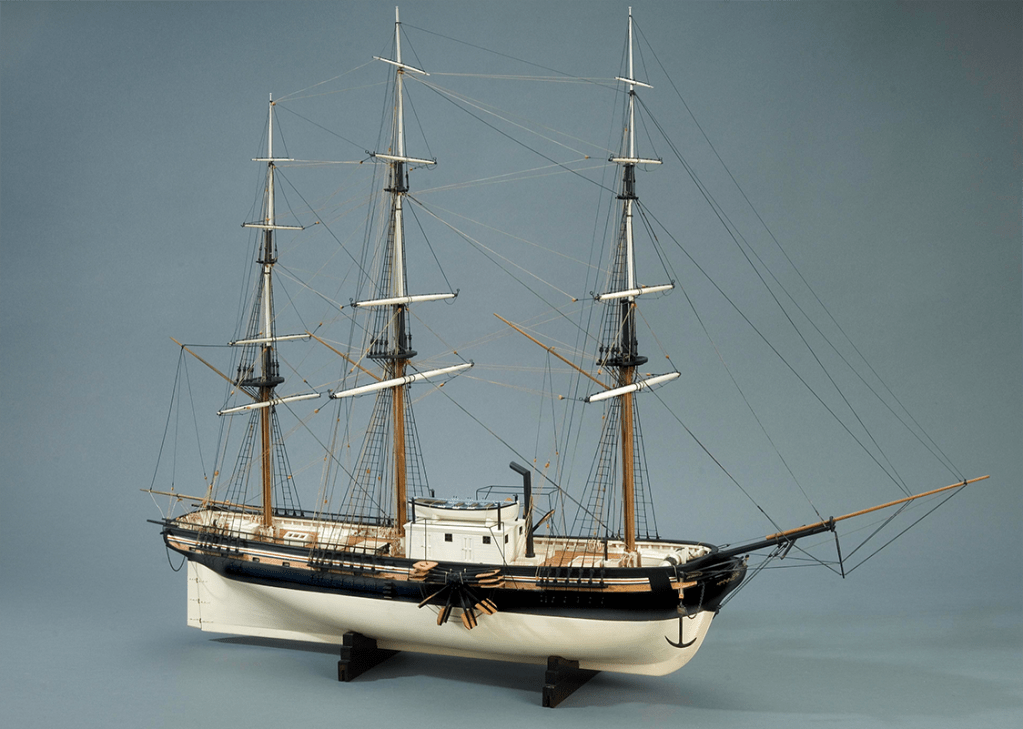 Mientras tanto, Steven Roberts tuvo que hacer ajustes menores al aparejo. Mantuvo los tres mástiles habituales para llevar velas cuadradas, pero tuvo que colocar el palo mayor más hacia popa de lo habitual para acomodar el motor, la caldera y la chimenea. También eliminó los mástiles y velas reales que generalmente se extendían por encima de las velas de mesana en barcos de este tamaño. Así que, el nuevo barco llevaría menos velamen de lo habitual. Se esperaba que, en tiempo calmado, el motor de vapor, trabajando junto con las velas, compensara la diferencia.