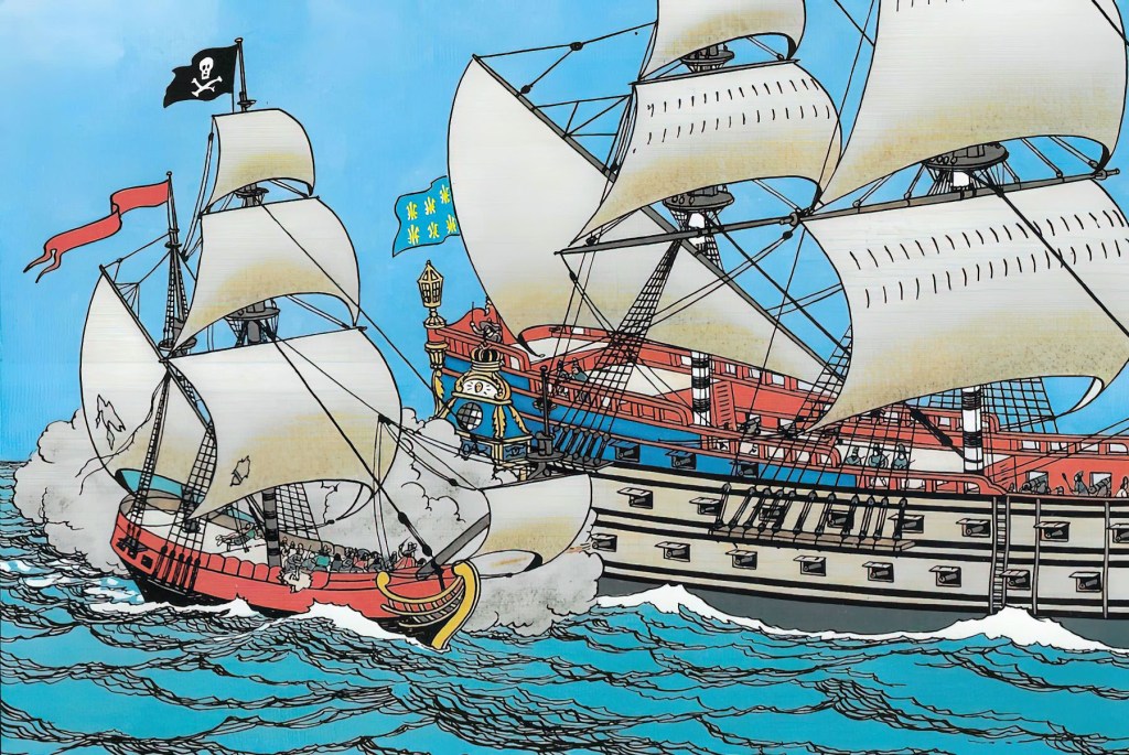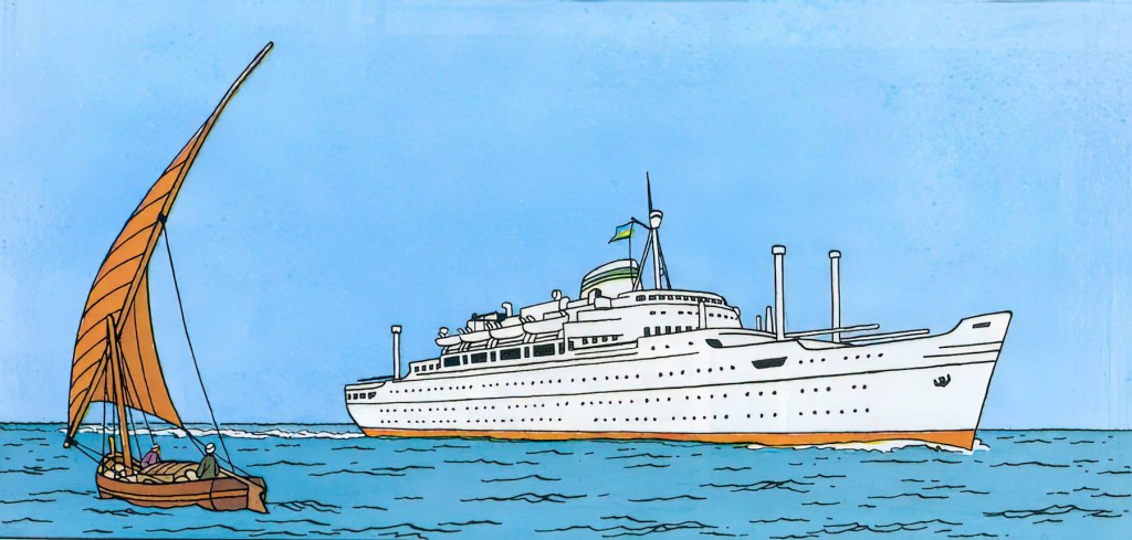 Si no conoces a Tintín o no has leído ninguna de sus aventuras, amigo lector, amiga lectora, te está faltando tiempo para salir corriendo a comprar sus álbumes. Como en toda gran aventura en las que protagonizan Tintín y su inseparable perro Milú, no faltan persecuciones en coche, viajes en avión, avionetas, hidroaviones, trenes y por supuesto barcos. Los barcos en las novelas de aventuras son la puerta de acceso a mundos exóticos, a aventuras, guerras, gloria, naufragios y una visión romántica de experiencias durísimas y traumáticas en la vida real. En las aventuras de Tintín los barcos suelen tener un gran protagonismo y una presencia constante.