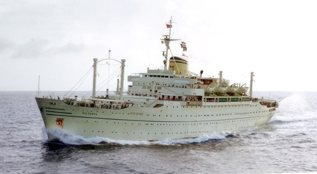Con 152 metros de eslora, el Victoria podía transportar 500 pasajeros entre Venecia y el Lejano Oriente. puesto a la venta en 1978, fue adquirido por la ONG Mercy Ships, con sede en Texas, y convertido en barco hospital. Renombrado Anastasis (etimológicamente: «resurrección»), permaneció en servicio hasta 2007, surcando los océanos del mundo como parte de su misión humanitaria. La elección de este barco no fue casual. Se seleccionó porque, en realidad, correspondía exactamente al papel que desempeña en el álbum.