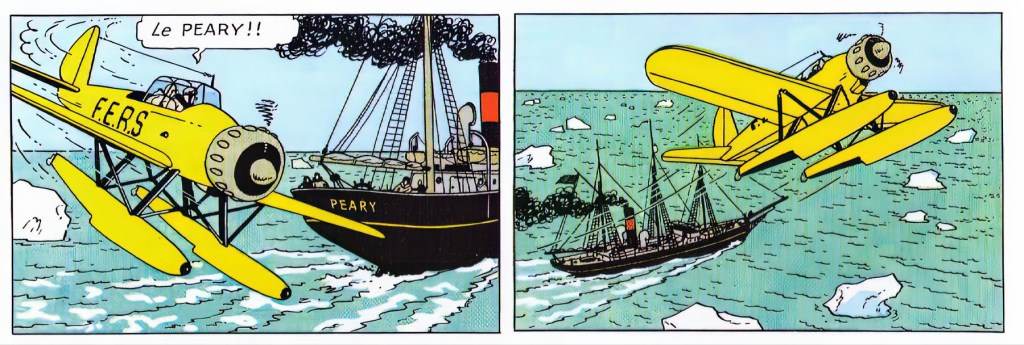 El Peary es el barco que compitió contra el Aurora en el Océano Ártico para alcanzar el meteorito, El barco fue financiado por el acaudalado banquero sanriqueño Sr. Bohlwinkel . A diferencia de su patrocinador el capitán del Peary parece ser un hombre mucho más honesto y lícito al detener a su primer oficial, Frank , que estaba a punto de dispararle a Tintín para evitar que aterrizara en el meteorito antes que los hombres del Peary. Sin duda debe su nombre al explorador ártico estadounidense Robert Peary (1856-1920).