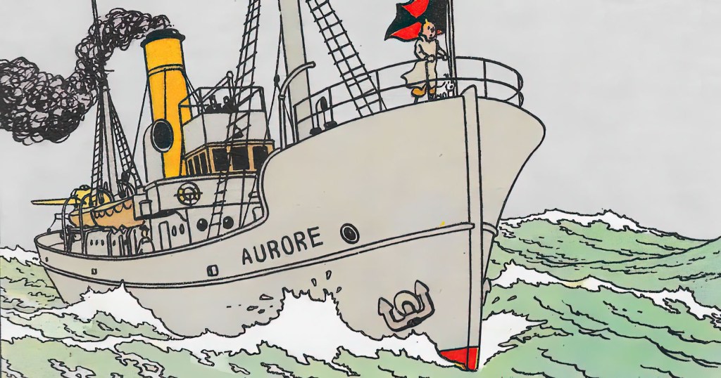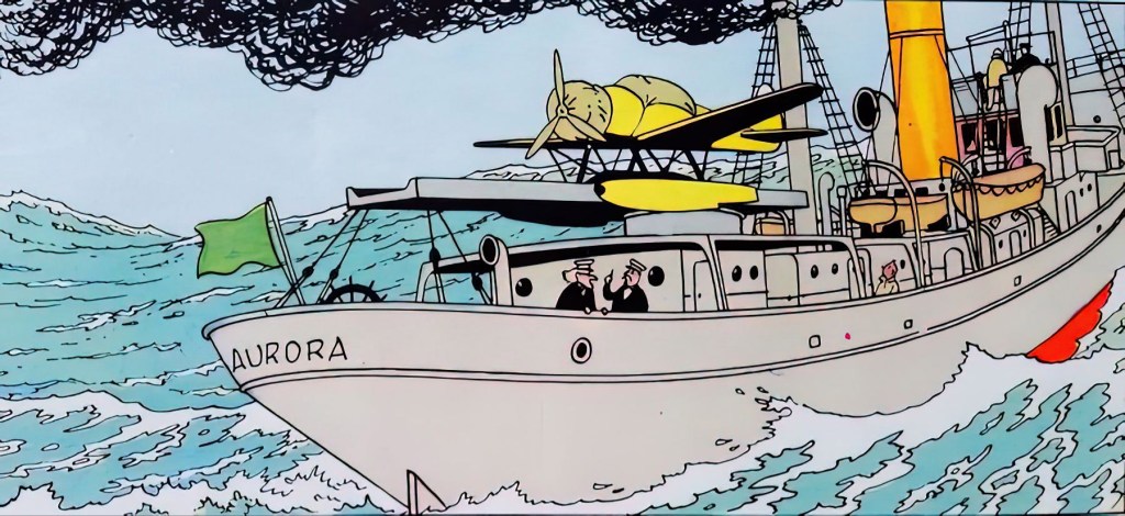 El Aurora es un buque polar con hidroavión. Este es un diseño ficticio, Hergé no se inspiró en ningún barco real. Más tarde Hergé lamentaba no haberlo hecho, pues le parecía que había quedado muy poco real y creíble.