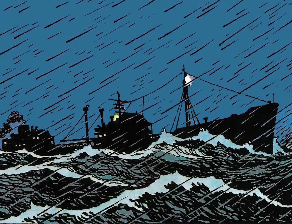 En el transcurso de la historia, el barco es atacado por un submarino enviado por Roberto Rastapopoulos , logrando esquivar varios torpedos hasta que el USS Los Ángeles acude en su ayuda con aviones de combate tras recibir una señal de socorro.