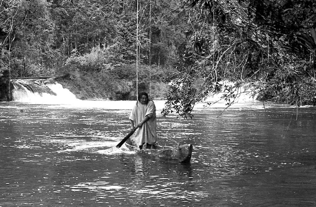 Es probalme que la imagen que inspiró esta canoa fuese originalmente tomada por Jacques Soustelle (o en algunos archivos atribuida a las expediciones de Frans Blom en los años 20). La mayoría de las fuentes citan las fotos tomadas por Soustelle durante su misión etnográfica entre 1932 y 1934, aunque Hergé también consultó números de la revista National Geographic de la década de 1920 (específicamente de 1921 y 1930) que mostraban piraguas similares en Panamá y México. Una de las fotos más icónicas de este tipo apareció en la revista francesa L’Illustration el 21 de julio de 1934, en un reportaje titulado «Chez les derniers Mayas» (Entre los últimos mayas). En la fotografía original se ve a un indígena lacandón de pie o sentado en una piragua (canoa excavada en un tronco) navegando por un río selvático con vegetación densa, exactamente igual a la composición que Hergé dibujó para Tintín y su guía Caraco.