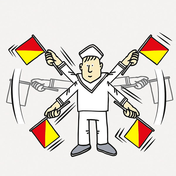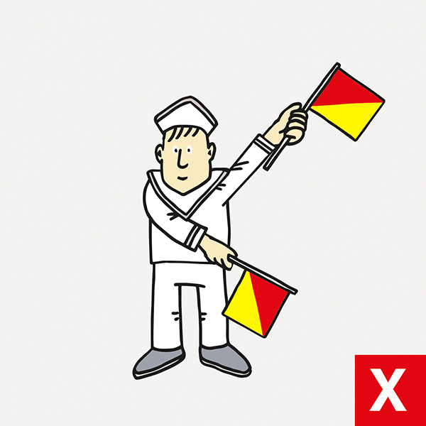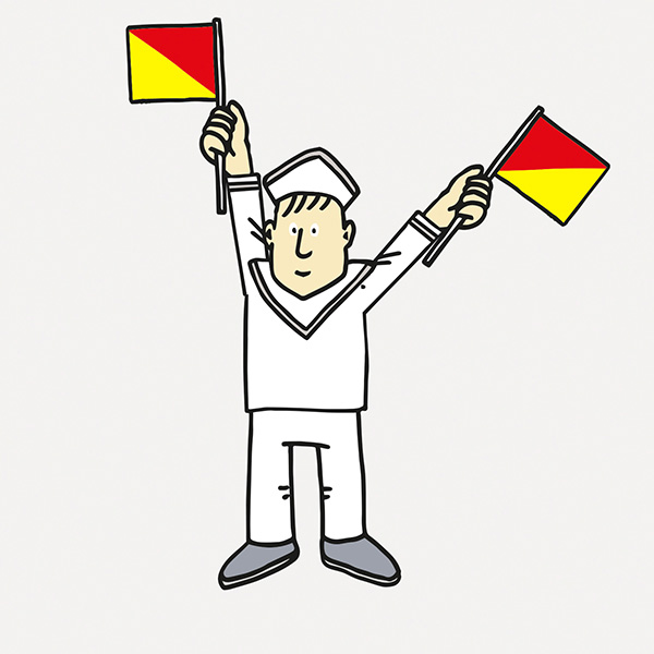 El semáforo (o alfabeto semáforo) es un sistema de comunicación en el que se utiliza la posición de los brazos para representar cada letra del alfabeto, incluido en el código internacional de señales de la Organización Marítima Internacional. De uso esencialmente militar, originalmente se creó para representar el alfabeto inglés, por lo que no incluye caracteres no ingleses y hasta el día de hoy no existe consenso sobre cómo hacerlo. Si te interesa la historia del alfabaeto semáforo, puedes leerla en el post de este enlace.