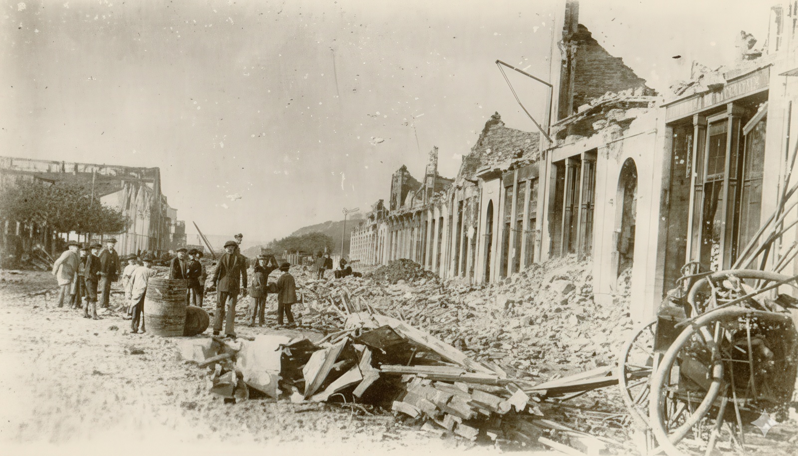 Edificios destrozados por la primera explosión del Cabo Machichaco